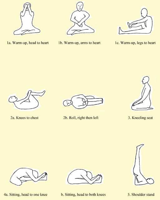 fünf bis zehn Minuten sanfte Asanas vor Pranayama und Meditation sind ein